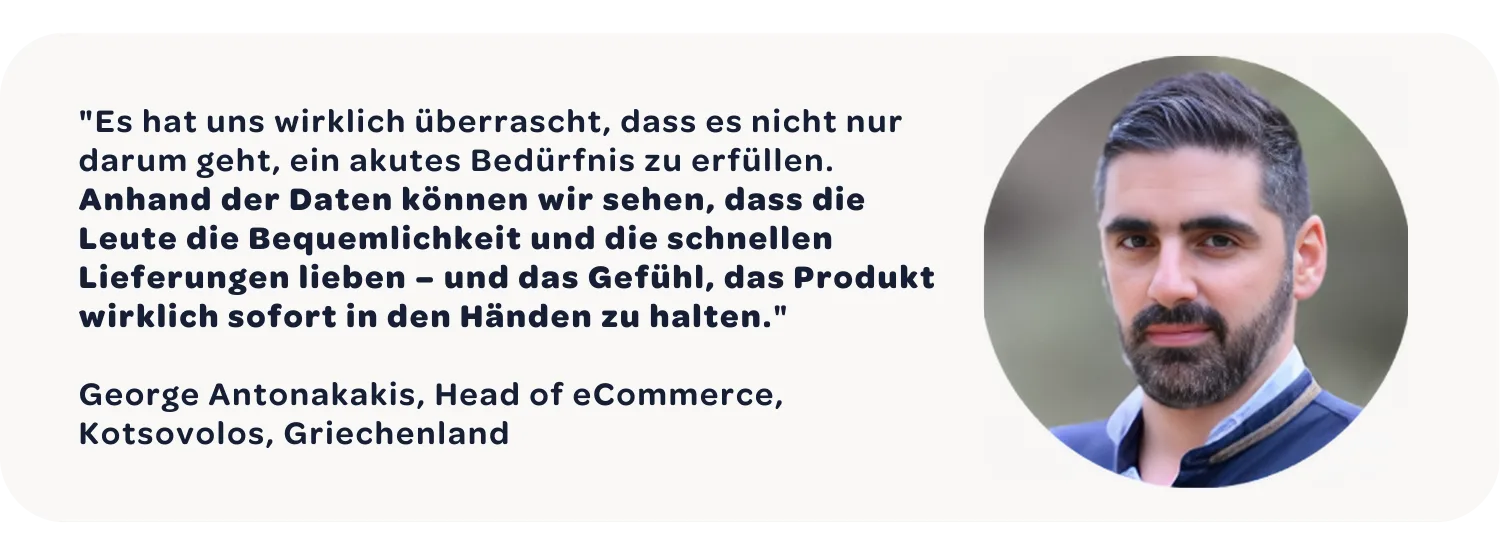 "Niemand besitzt die Kund*innen. Wir haben nur jeweils einen Teil ihres Erlebnisses in der Hand – und wir versuchen, ihnen das beste Erlebnis zu bieten." George Antonakakis, Head of eCommerce, Kotsovolos, Griechenland