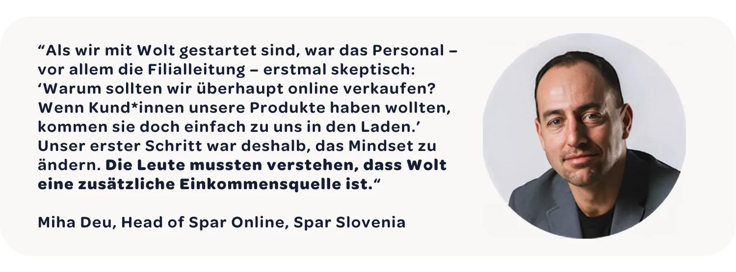 "Als das erste Geschäft live ging, stiegen die Umsätze anfangs so stark an, dass das Geschäft bis zu 7% mehr Umsatz machte. In der Geschichte von Spar Slowenien hatten wir noch keine Marketingkampagne, die den Umsatz so stark gesteigert hat." Miha Deu, Head of Spar Online, Spar Slowenien