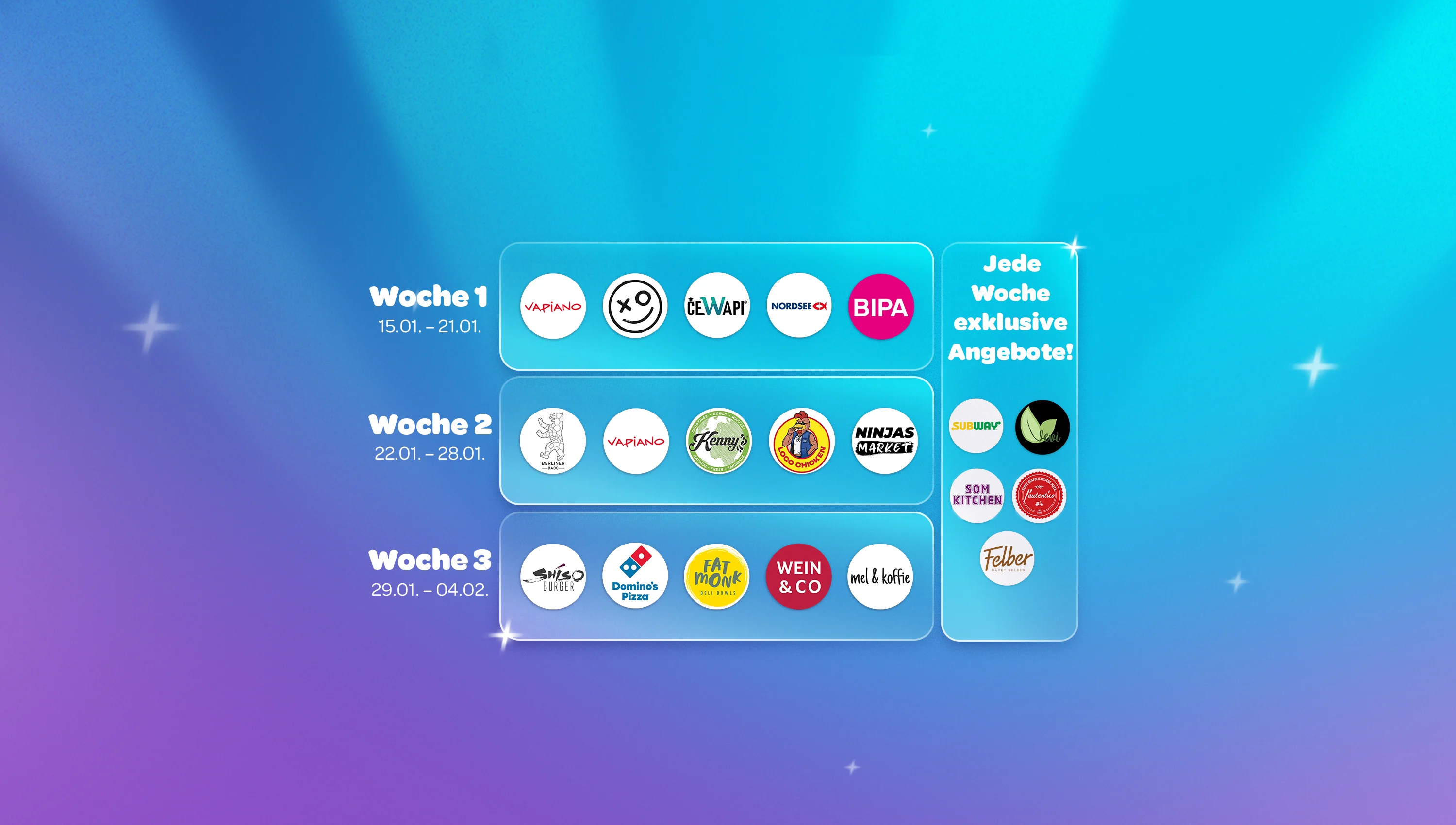 Die Aktionen und Vorteile der Wolt+ Wochen sind nur für Wolt+-Mitglieder verfügbar und gelten nur bei ausgewählten Lokalen, die im Wolt-Service angegeben sind.