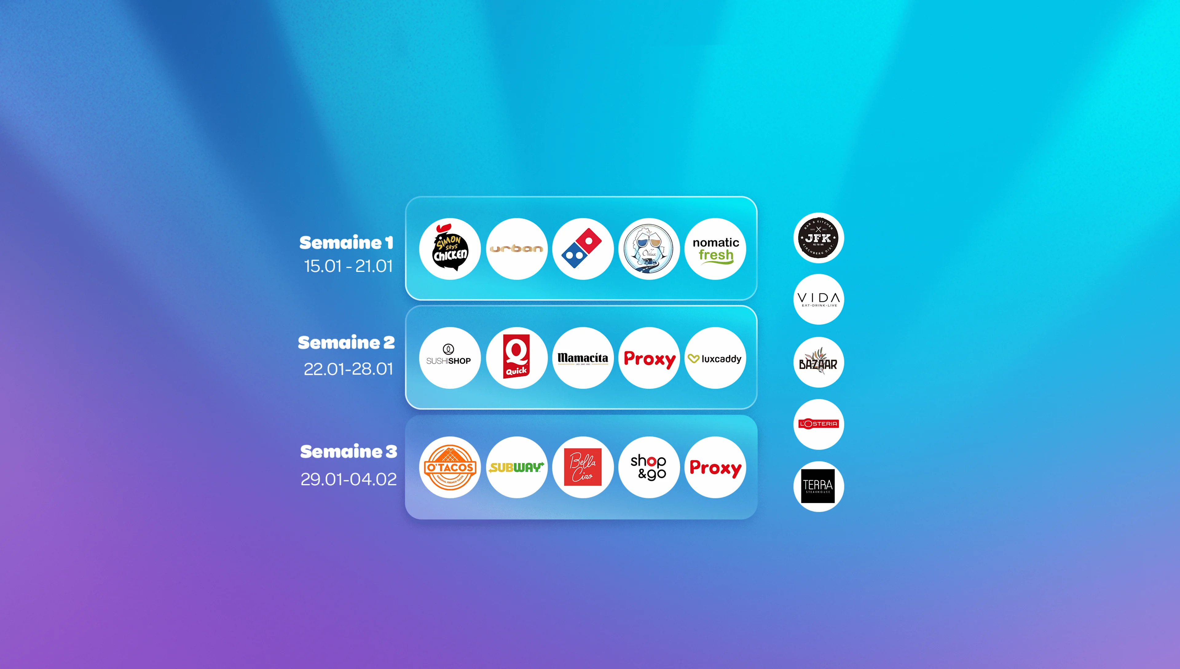 Profitez des Wolt+ Weeks du 15/01 au 04/02. Rejoignez Wolt+ dès maintenant pour profiter de la livraison à 0 € et des offres exclusives réservées aux membres. Des nouveautés à découvrir chaque semaine ! Le tout avec un seul abonnement mensuel.