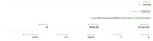 בעת לחיצה על קמפיין, מופיע דוח ביצועים מפורט. להלן הסבר קצר על כל אחד מהמדדים המופיעים בדוח: