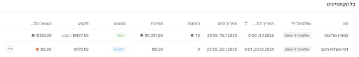 כדי להבין אם קמפיין שיווקי הצליח, מתחילים ממבט כללי על הביצועים במסך הקמפיינים.