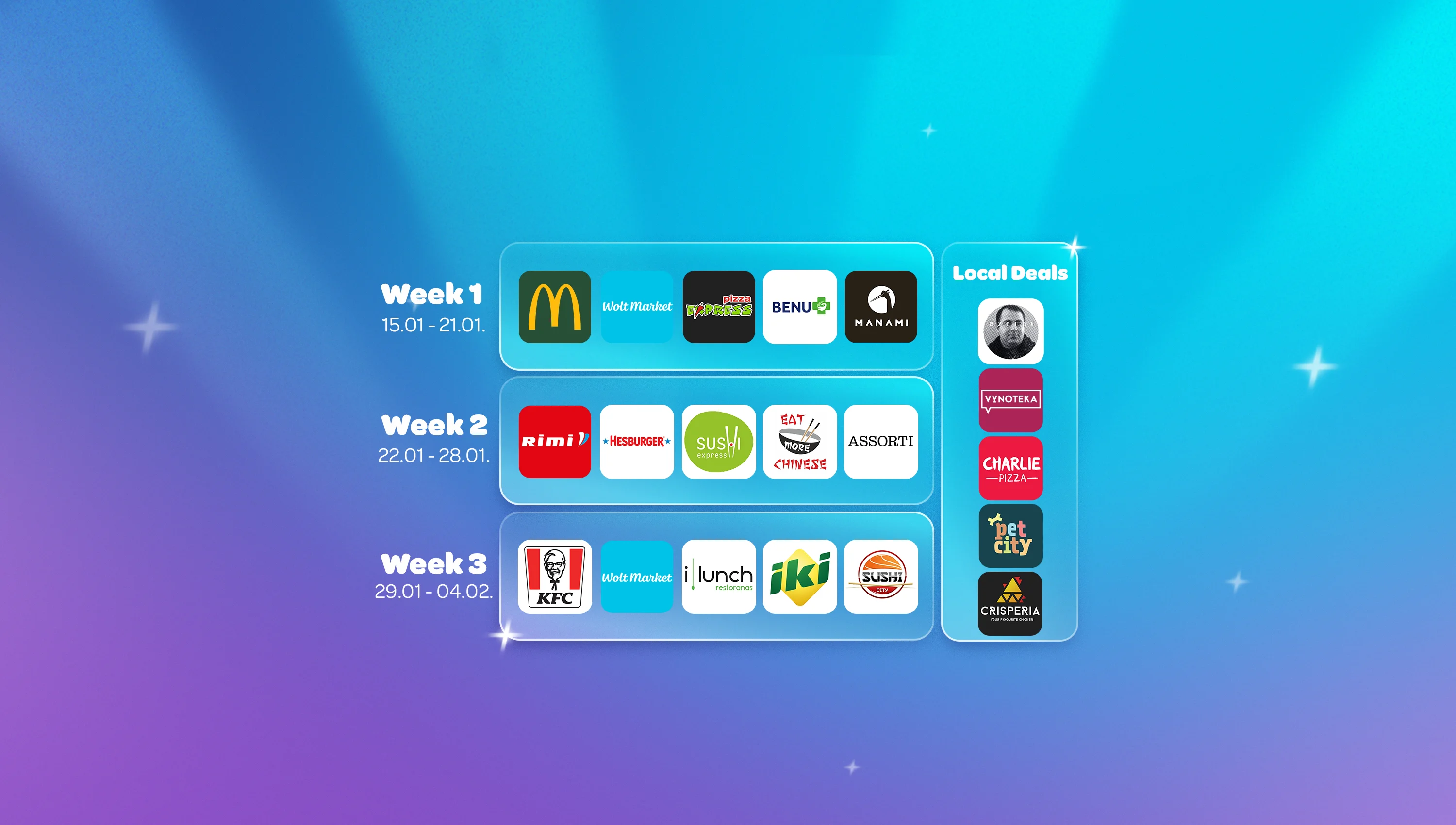 Some of the promotions may be limited in time, subject to availability, require a certain minimum order value, or vary by location as indicated in the Wolt Service. The maximum discount varies by offer.